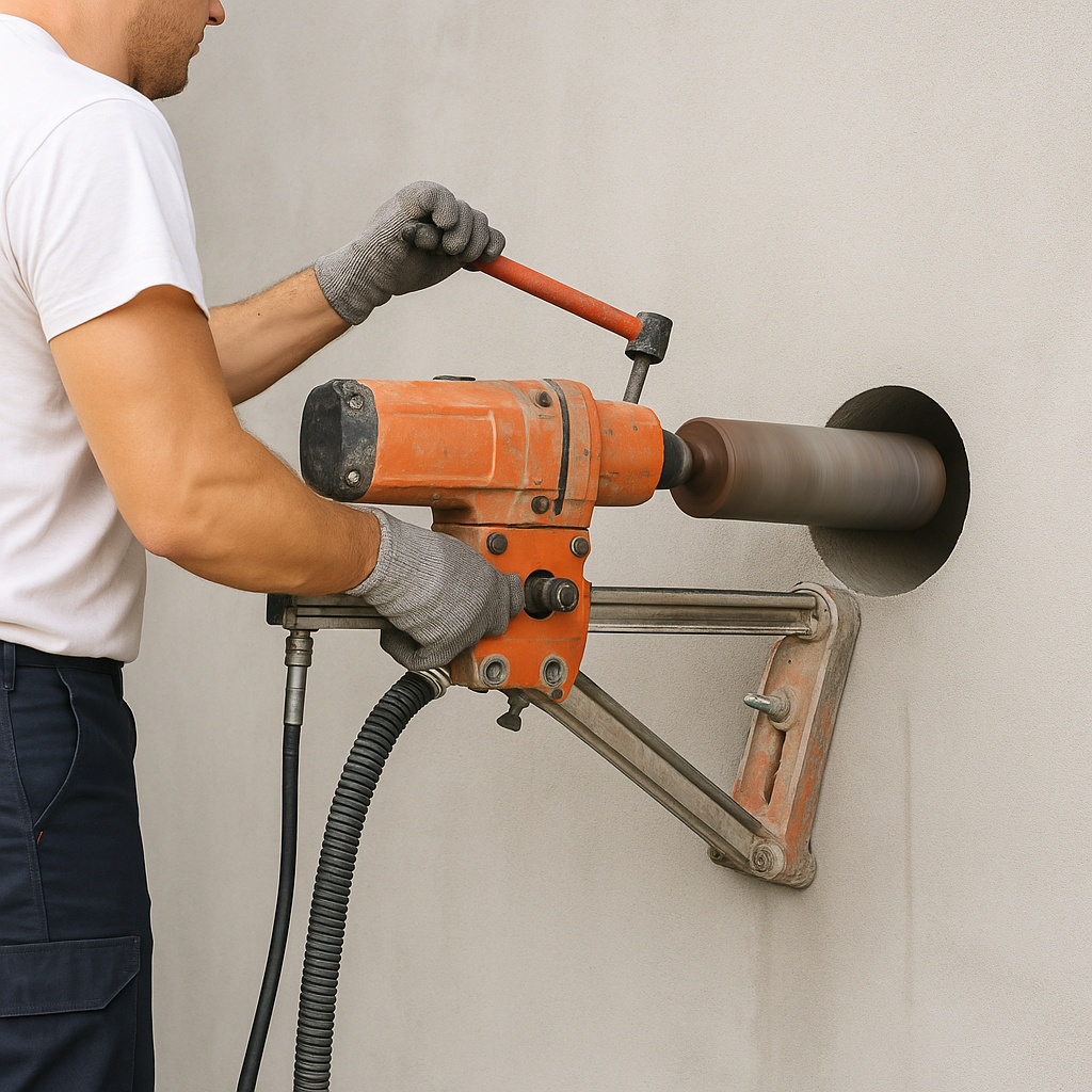 Création d’ouvertures circulaires dans le béton pour le passage des gaines électriques, tuyauteries ou systèmes de ventilation (VMC). Le tout sans détériorer la structure existante.